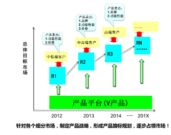 5. 轉變產品開發(fā)模式(如圖4),形成產品的賣點和產品路標規(guī)劃(如圖5)。