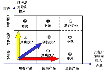 針對④⑤區(qū)域這種布局投入型,企業(yè)一定要慎重,最好先將④轉(zhuǎn)化成①或⑤轉(zhuǎn)化成③。